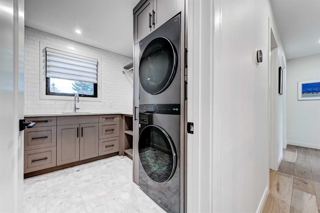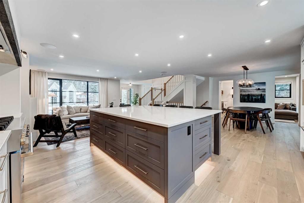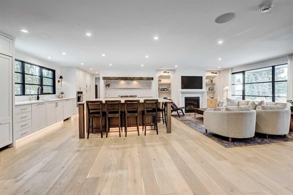 Rare opportunity in Lakeview Village to own a fully rebuilt home (2025) situated on one of the community’s largest lots—a 17,200 sq. ft. pie-shaped property backing directly onto the west side of North Glenmore Park. This exceptional custom residence offers approximately 3,700 sq. ft. of developed living space, with architecture by Andison Residential Design, interiors by Lori Sellmer, and construction by Ashwood Built. Over $1M has recently been invested in a complete transformation of this exclusive home. The property features 6 bedrooms, 3 full bathrooms, and 1 powder room, along with a new upper-level laundry room and an additional laundry area in the lower level. Nearly every component has been updated, including insulation, triple-pane windows, mechanical systems, plumbing, and electrical. Hardwood flooring extends throughout the main and upper levels. The main floor showcases an open-concept kitchen, dining, and living area, complemented by an enclosed office, additional den/flex space, powder room, and large mudroom including custom built-ins with direct access to the attached garage. The upper level offers 4 bedrooms and 2 full bathrooms, including a spacious primary suite with a large walk-in closet and full ensuite; all upper bathrooms feature in-floor heating. The lower level includes 2 additional bedrooms, a full bathroom, and a generous flex/recreation space. Exterior upgrades include new Hardie board siding with stone accents, new roof shingles, a covered Trex composite deck, and a fully installed irrigation system for both front and rear yards, along with direct gated access to North Glenmore Park. The attached garage is equipped with an additional electrical panel and is vehicle charging ready. Other notable features include central A/C, gas fireplace, custom window coverings, built in speakers in and out, water softener, kitchen drinking water filtration, on demand hot water, cover rear patio, & 200 amp service. This is a rare chance to own a move-in-ready home in a highly sought-after location.