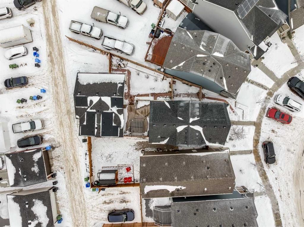 Triple Garage Alert! Welcome home to this inviting Mahogany 3 Storey home, perfectly positioned on a large pie-shaped lot offering exceptional indoor and outdoor living. A generous front porch sets the tone, welcoming you into a thoughtfully designed entry complete with a built-in bench for boots and jackets and a convenient front closet. The main floor opens into a bright, airy living space highlighted by large triple-pane windows, high ceilings, ceiling fans, and seamless flow between the living room, dining area, and kitchen—ideal for both everyday living and entertaining. Just beyond the kitchen is a discreet main-floor bathroom and a rear entry leading to the expansive backyard. Outdoor features include a large deck built around the Arctic Spas hot tub, a pergola, abundant garden beds, and a dedicated dog run. A cleverly hidden dog door, concealed within a closet, provides direct access to the run. The low-maintenance landscaping continues with a no-mow front yard and a clover lawn in the backyard. Upstairs, the primary bedroom serves as a private retreat with a walk-in closet and ensuite. Two bedrooms with full closets and an additional bathroom complete this level. Luxury vinyl plank flooring was installed throughout the second and third floors in 2022, with new carpet on the stairs. One of the home’s most distinctive features is the third-floor loft, offering two large, flexible spaces. One, perfect for an additional bedroom, the other available for use as a home office, studio, or playroom. The unfinished basement remains a blank canvas ready for your future vision. The detached triple garage is a standout feature, offering over 750 sqft of space with ceilings over 11 feet high. Two of the three bays are vaulted, and the garage is equipped with a car lift from Lift King, 220V wiring, and a gas line already installed for future heating. An additional parking pad provides space for extra vehicles or RV parking. The home also includes air conditioning, a solar panel system, and a hot water tank replaced in 2025. Located in the award-winning lake community of Mahogany, residents enjoy exclusive access to Calgary’s largest freshwater lake, two private beaches, extensive pathway systems, and year-round recreation. With excellent schools, numerous nearby parks, shops, restaurants, and quick access to major roadways, Mahogany offers an exceptional blend of lifestyle, convenience, and community in Calgary’s vibrant southeast.